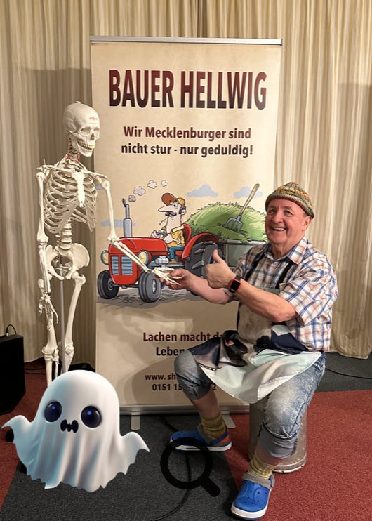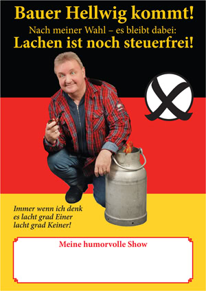 Die humorvolle Showeinlage für Familienfeste, Geburtstag, die Silberhochzeit oder die goldene Hochzeit. Das Geburtstagskind oder die Jubilare werden auf nette und humorvolle Weise in die Show einbezogen, so daß immer ein ganz persönliches Erlebnis entsteht. Die Gäste sollen mitsingen, schunkeln und Spaß haben. Lachen macht das Leben schön, sagt unser Bauer Hellwig.